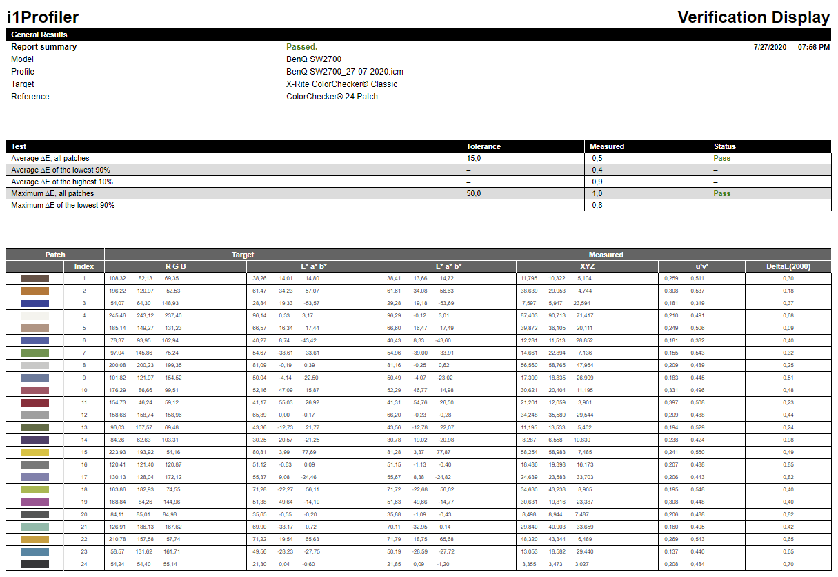 Niech będzie, że został fabrycznie ustawiony (nie skalibrowany), a to raport dołączany do monitora z pomiarów tych ustawień fabrycznych. Użyte przyrządy do sprawdzenia to Konica Minolta CA 310 i CA 2000.