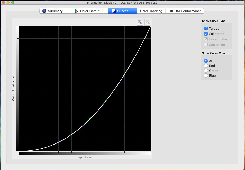 Powoduje tylko tyle, że na powiększeniu wykresu kanały RGB nie pokrywają się "idealnie" z targetem (biała linia). Sprawa ogólnie dotyczy tylko PA271Q, gdzie jest podświetlenie PFS i podczas kalibracji popularnym i1Display Pro nie otrzymujemy właściwej informacji zwrotnej z uwagi na niepoprawny odczyt widma przez kalibrator.