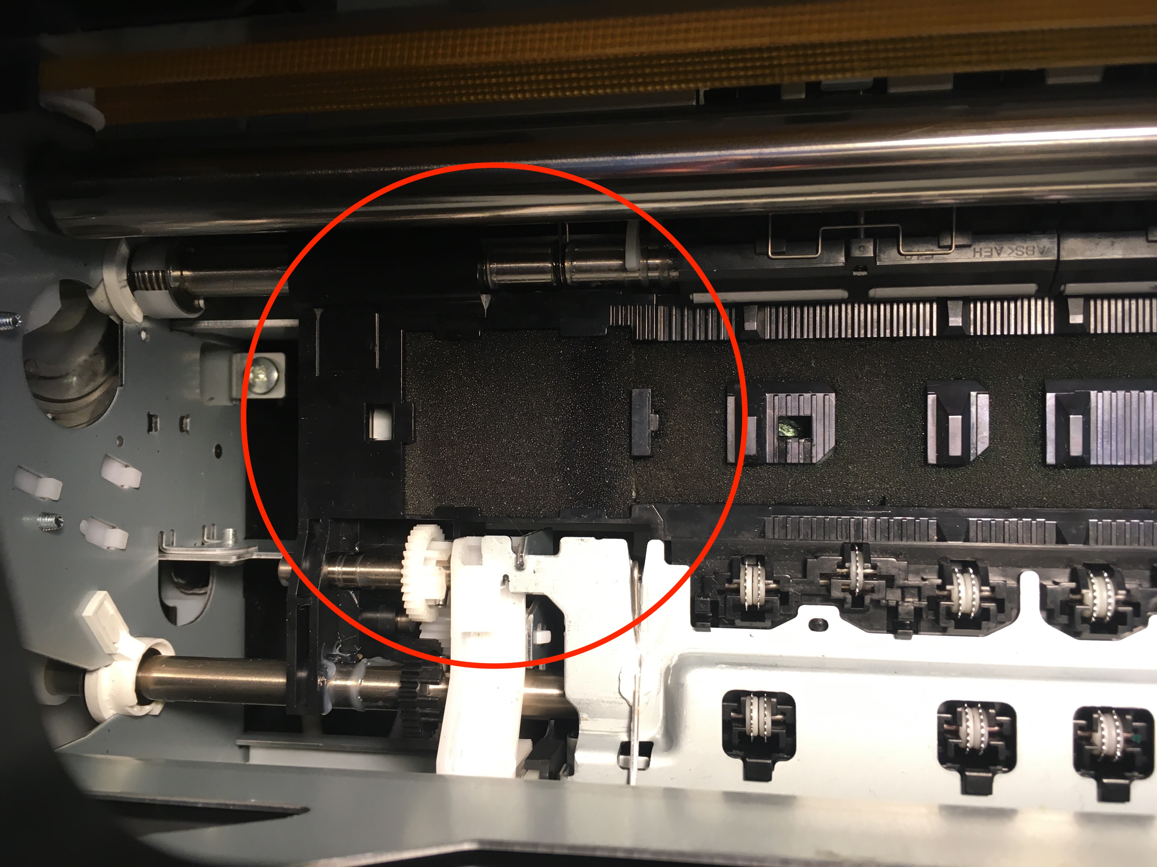 Po kilku wieczorach zmagań udało sie doprowadzić wnętrze do stanu używalności :) Okazało się , że ten model co kilka przejazdów zrzuca tusz na ink pad z lewej strony nawet jak nie drukujesz bordless:/ Słaby patent epsona bo po dłuższym czasie użytkowania lub postoju miejsce zasycha i staje się niedrożne - u mnie był betonik:) Odmoczyłem nisko budżetowo - płyn do szyb z 5%amoniaku 5zł ;) Oto efekty :) Zobaczymy co będzie dalej ...
