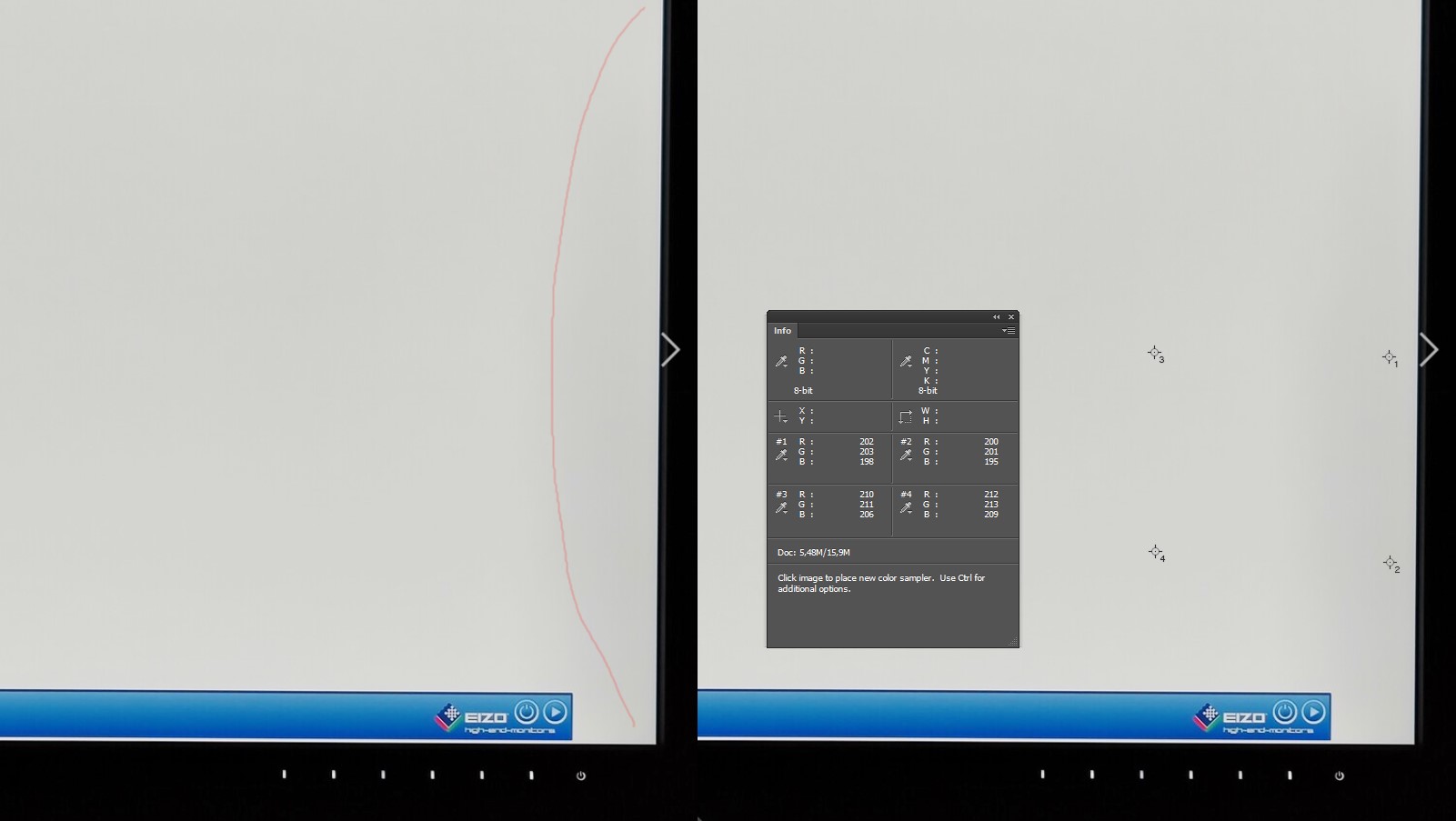 Pisałem do Eizo i rozmawiałem z nimi tu u siebie w UK. Oświadczyli mi że przykro im, ale taka wada nie kwalifikuje się do reklamacji w ramach gwarancji - musiałoby być minimum 15% różnicy. Wisienką na torcie było stwierdzenie pracownika serwisu, że „mam pecha po prostu”. Sklep w którym kupiłem monitor zaoferował mi bezproblemowo wymianę na inny egzemplarz. Niestety ten następny egzemplarz posiada podobne wady w rogach. Ciężko mi teraz stwierdzić czy mocniejsze czy słabsze od poprzedniego.