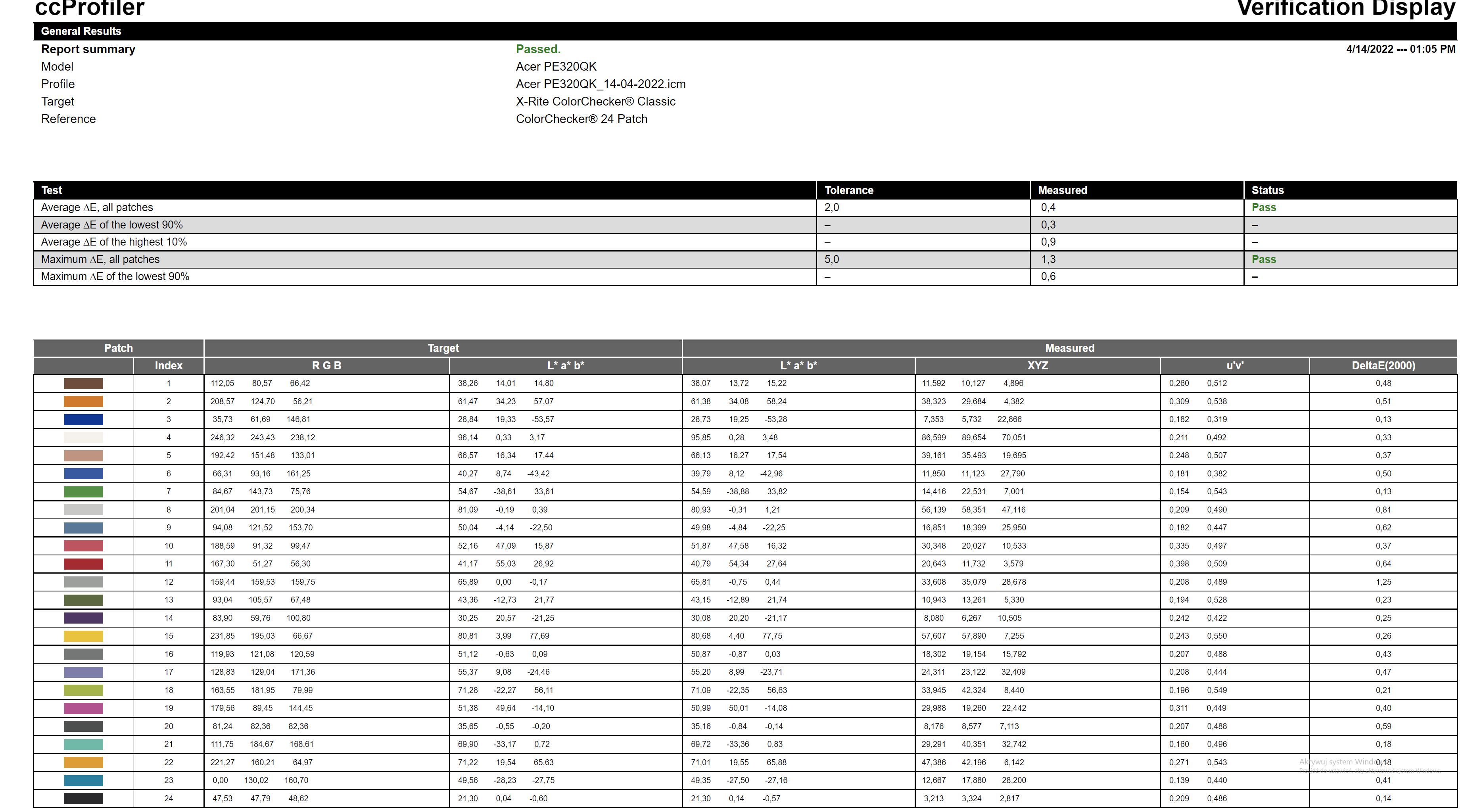 Skalibrowałem przez displaycal ale nie wiem jaka wyszła tu delta.