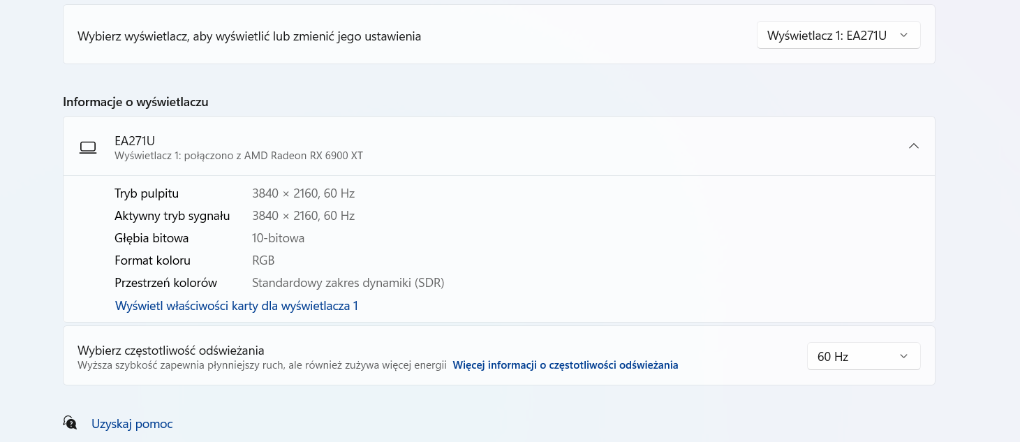 EA271U ma panel 10-bitowy, ale nie przyjmuje z komputera sygnału 10-bitowego.
